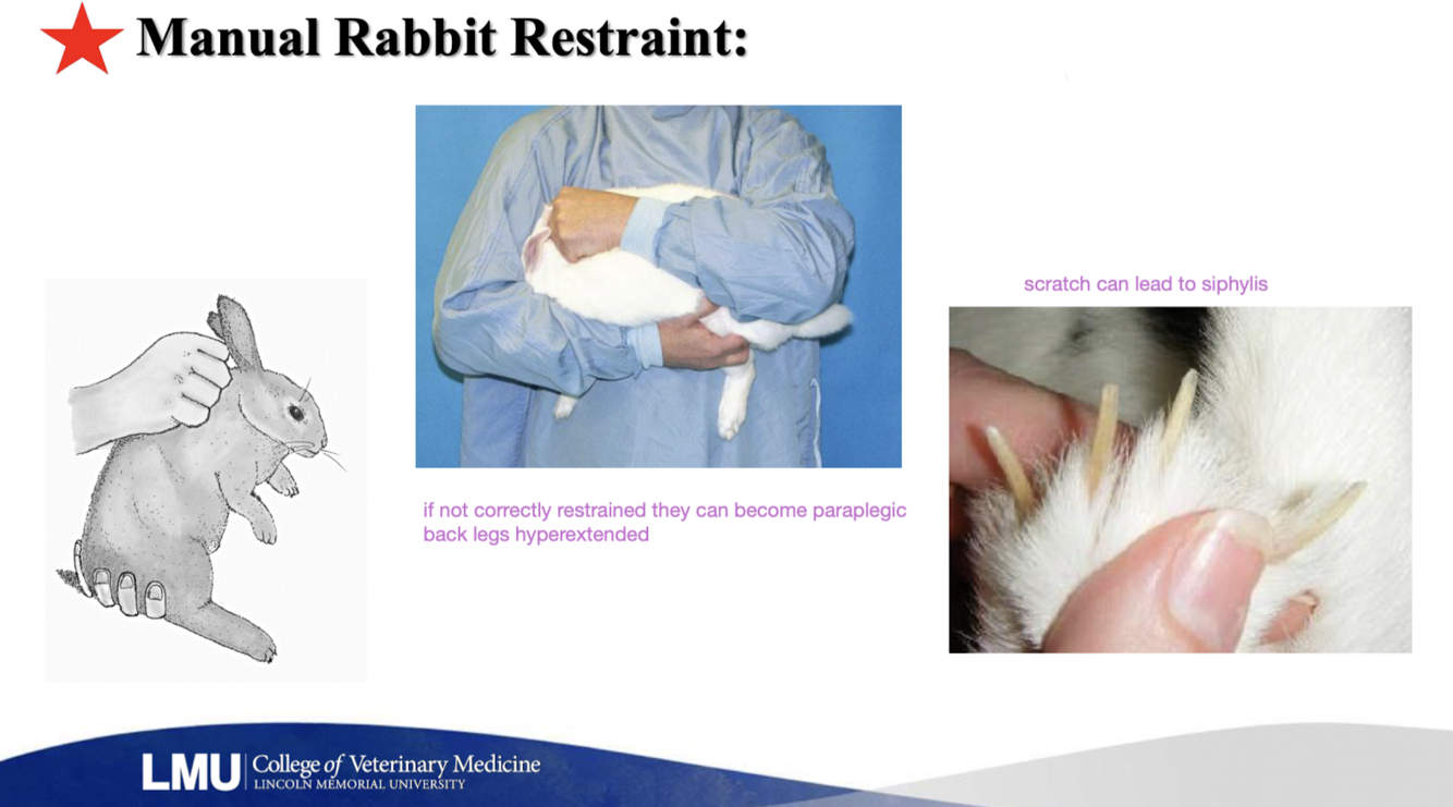 Describe restraint techniques used for handling pet rabbits