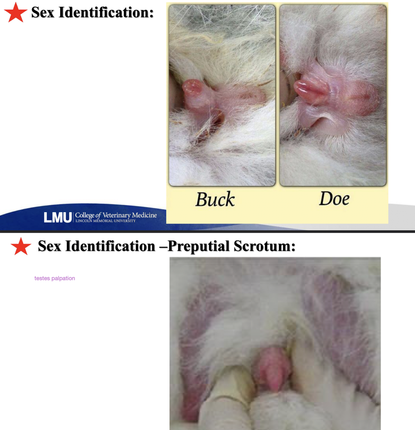 Describe and compare the landmarks for sex identification in the rabbit