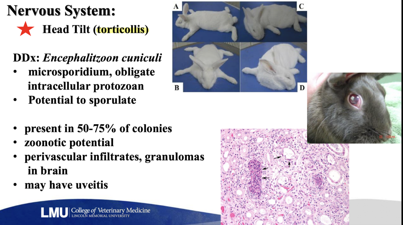 Give Ddx for head tilt in a rabbit