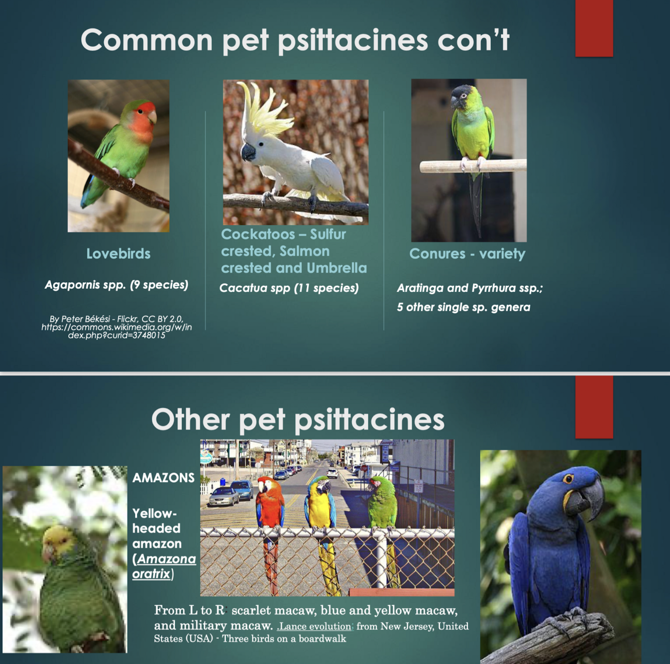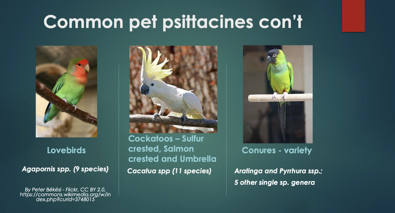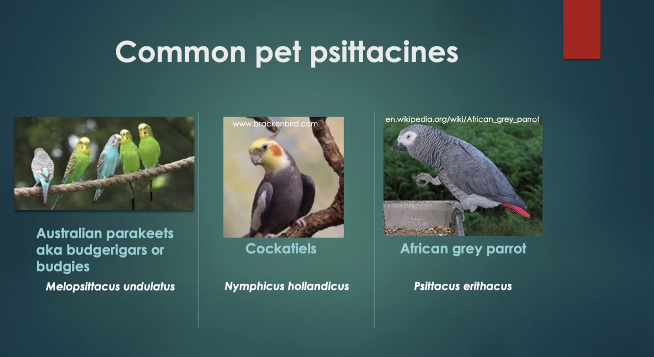 Recognize common pet psittacines