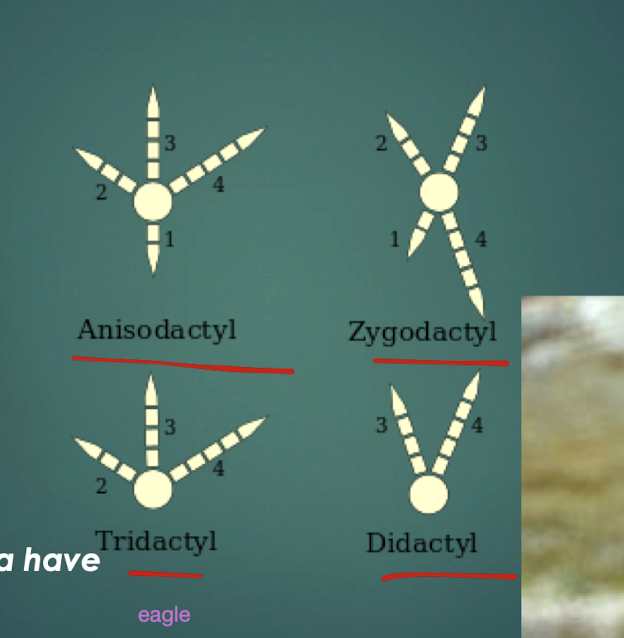 Zygodactyl feet 4 toes