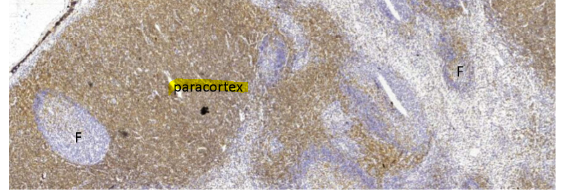 What lymphatic organ is this? What cells are concentrated in the paracortex? What cells are concentrated in the follicle? What also occurs in the follicles?