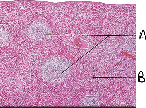 B= Red Pulp (stores RBC)