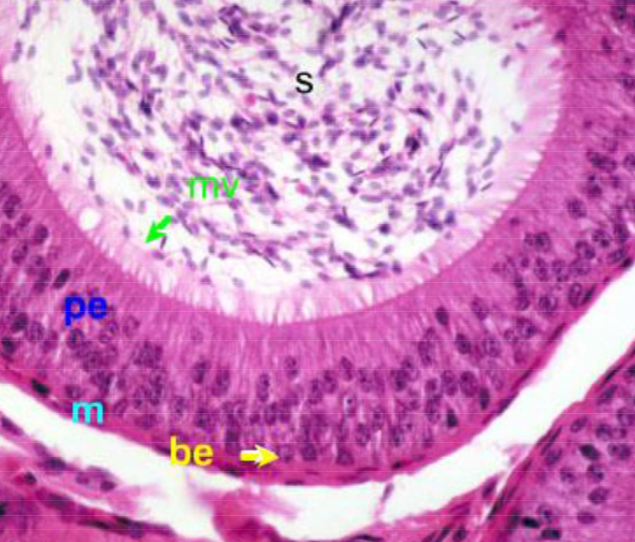 2= pigmented cells(forms zonular fibers)