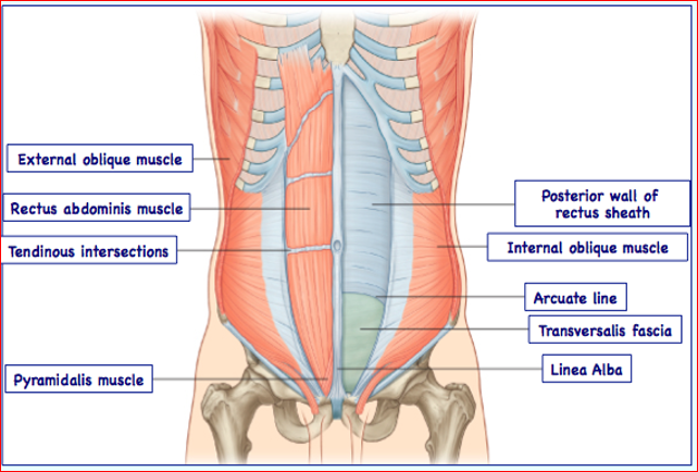•Aponeurosis of int. obl. splits to enclose rectus abdominis to form rectus sheath