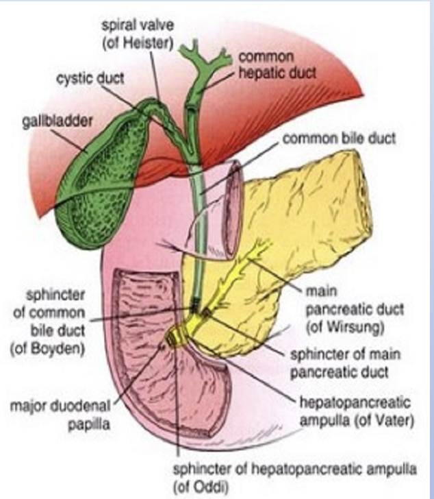 Guidewire threaded through Sphincter of Oddi into Ampulla of Vater to retrieve stone