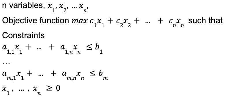 If an LP has n variables and m constraints, how many variables and constraints will its dual have?