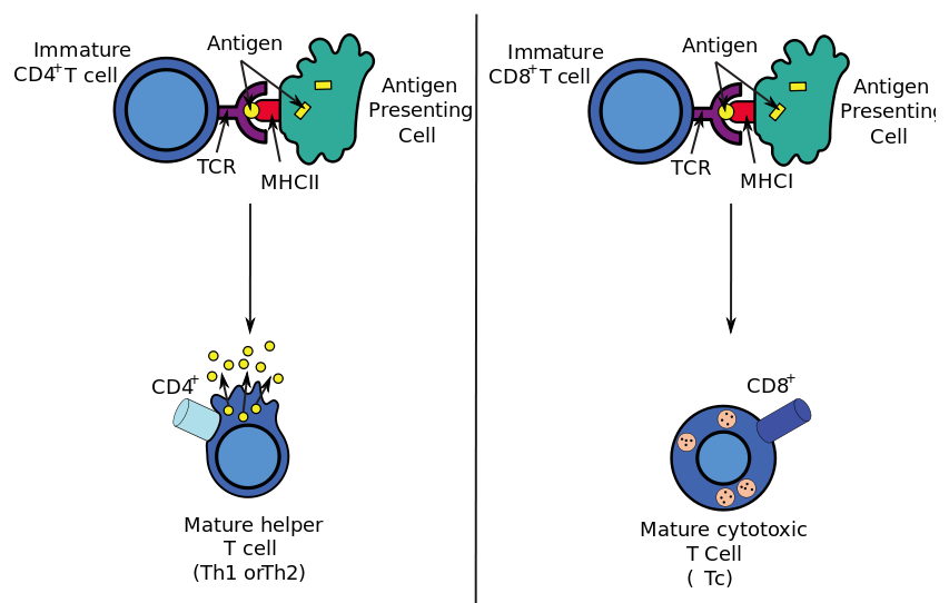 cluster of differentiation (CD) molecules reside on immune cells like T cells and function as coreceptors and are used to determine a cell’s identity