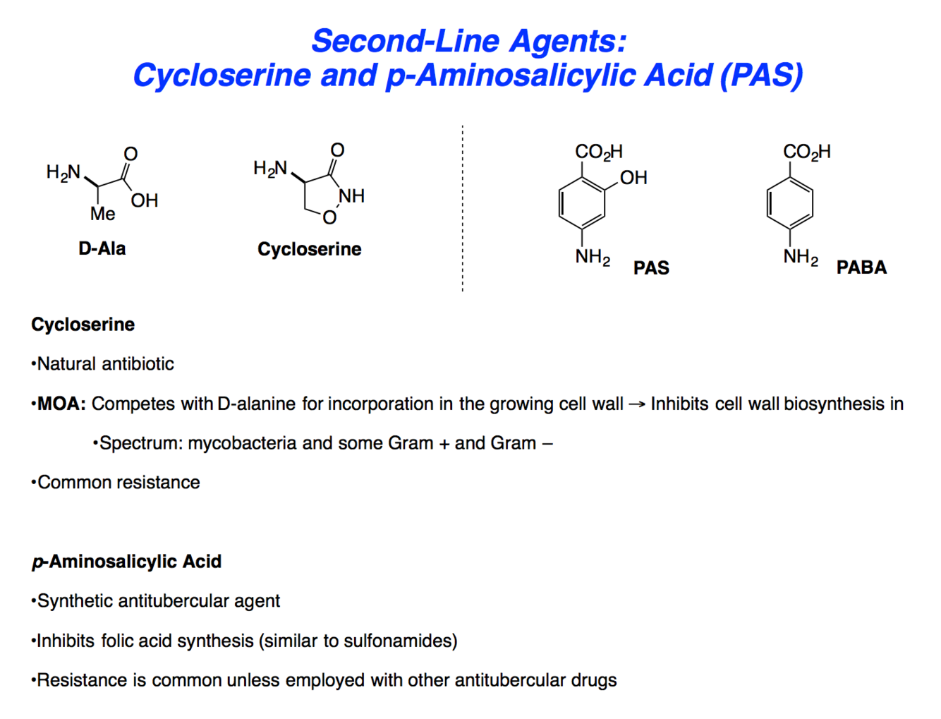 Second line agents cycloserine and p-aminosalicylic acid (PAS)