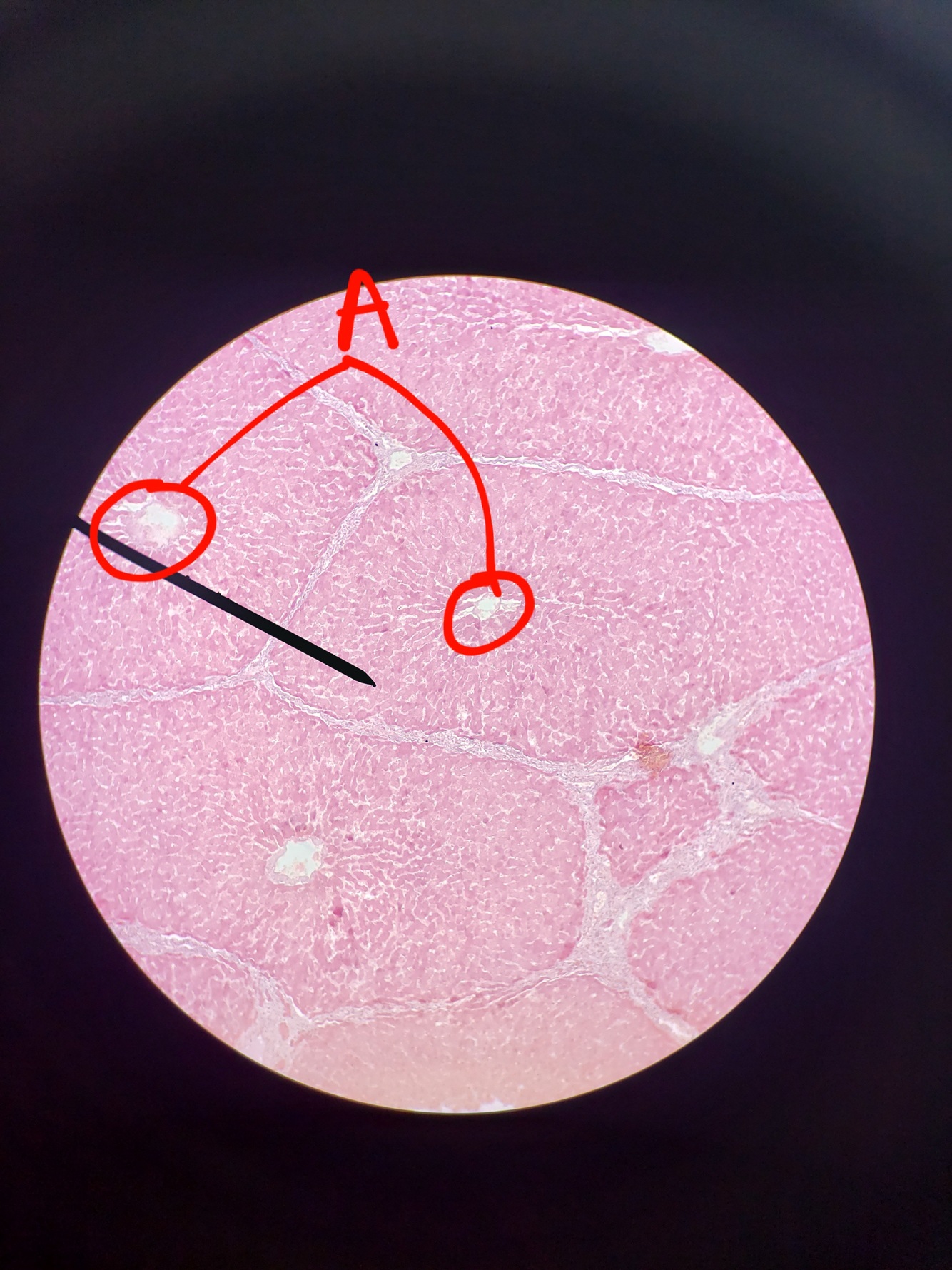 Name the tissue. Identify structure A, the white & the pink squiggly lines