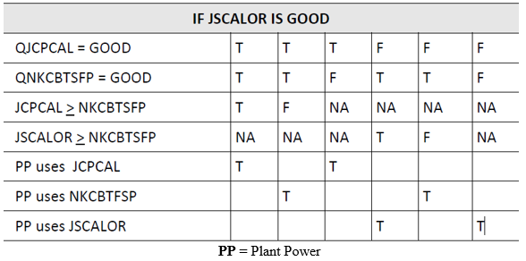 What are the truth tables and how are they used when JSCALOR is a bad boi?