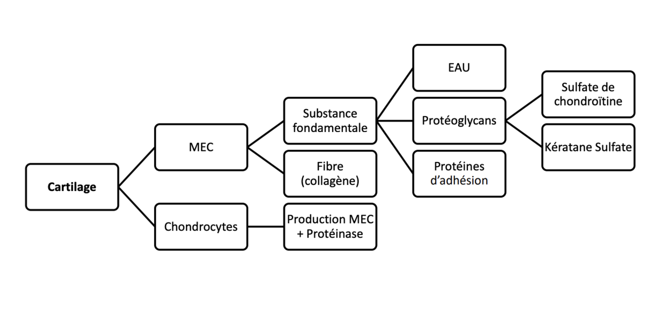 Des glycoaminoglycans (GAG), soit le sulfate de chondroïtine et le kératane sulfate.