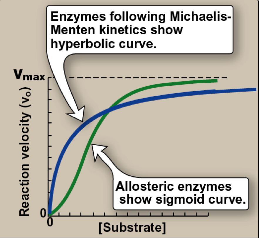Allosteric enzymes show sigmoidal curves.