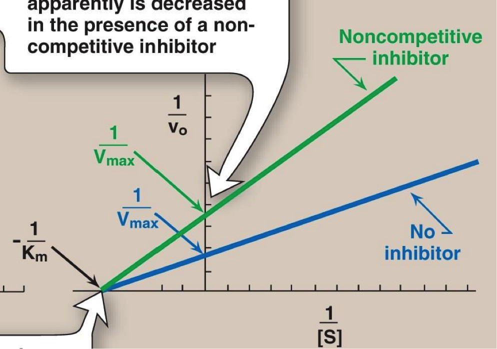 Non-competitive, Km doesn’t change. Only Vmax decreases.