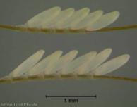 Hypoderma lineatum eggs are laid in lines of 6 or more on the lower limb
