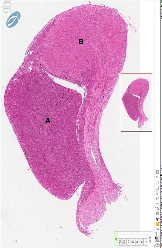 Which label represents the anterior pituitary in this H&E section of the pituitary gland? Which one represents the posterior pituitary?