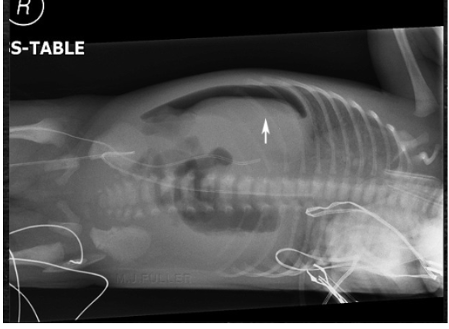 Lateral decubitusThe downward side can be evaluated for presence of fluid, such as a mobile pleural effusion, and the upward side will demonstrate free air, such as in the case of a pneumothorax (air in the pleural cavity)