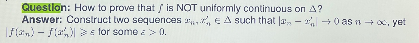 How to prove that f is NOT uniformly continuous on Δ