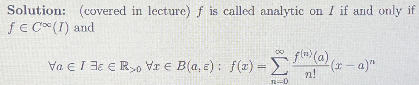 State what it means for f to be analytic on an open interval I