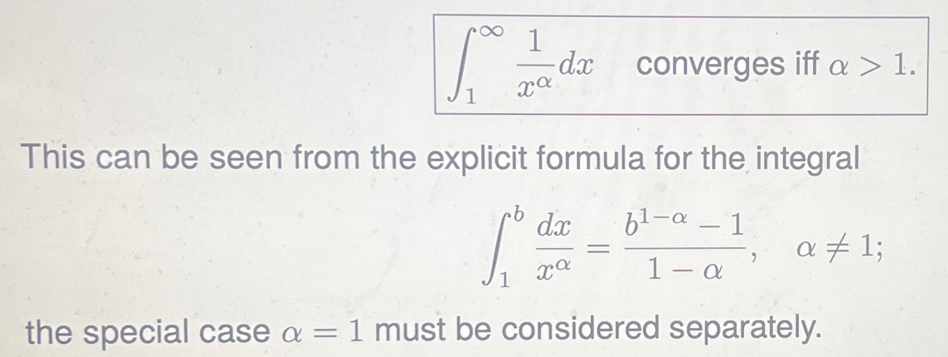 Integral of 1/x converges if? For (1,inf)