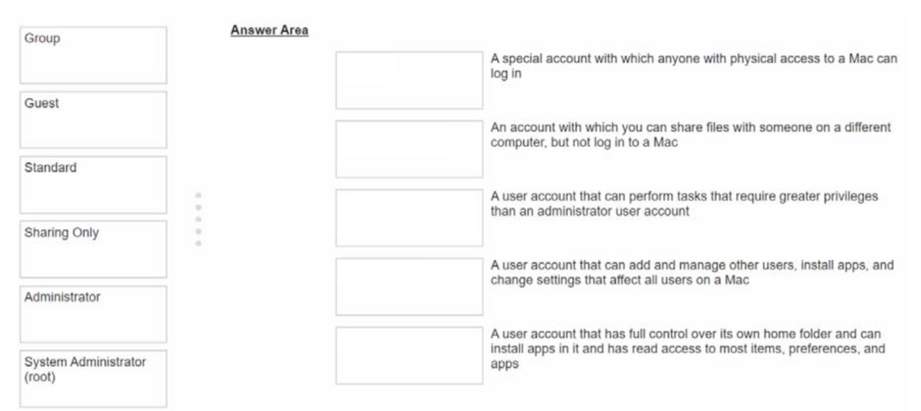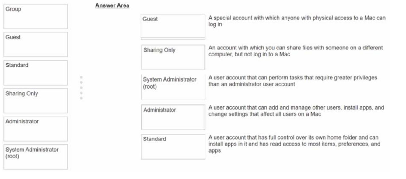 Match the user types on the left to the descriptions on the right by dragging the responses to the correct target areas. Responses may be used once, more than once, or not at all.