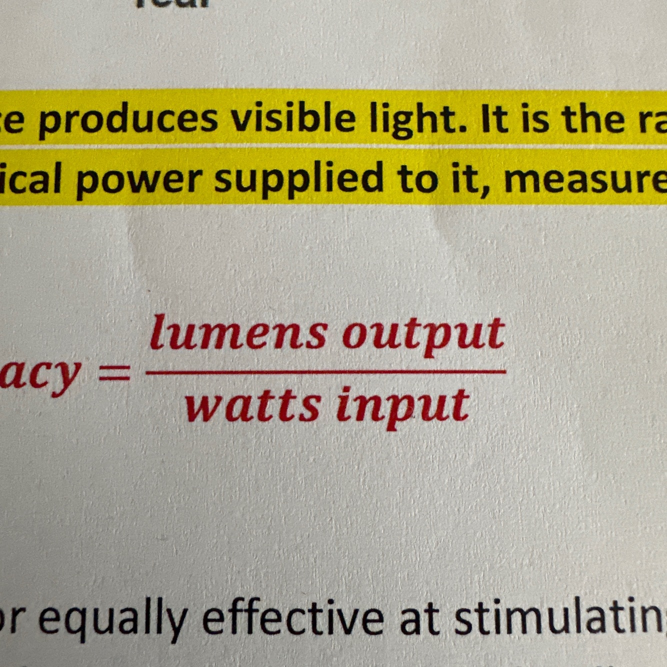 Luminous efficacy equation