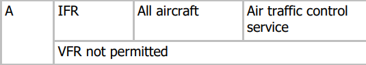 Type of Flight, Separation Provided and Service Provided in Class A Airspace ?