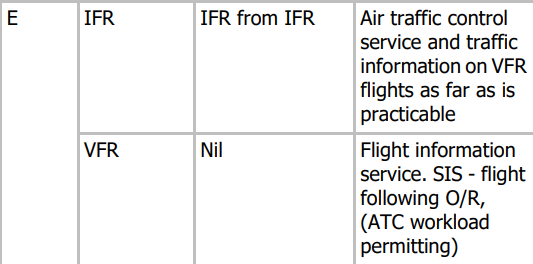 Type of Flight, Separation Provided and Service Provided in Class E Airspace ?