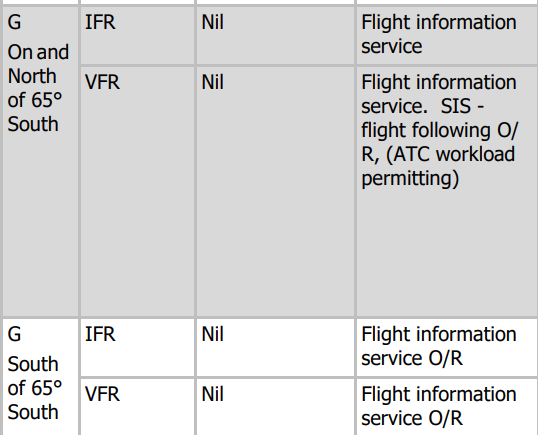 Type of Flight, Separation Provided and Service Provided in Class G Airspace ?