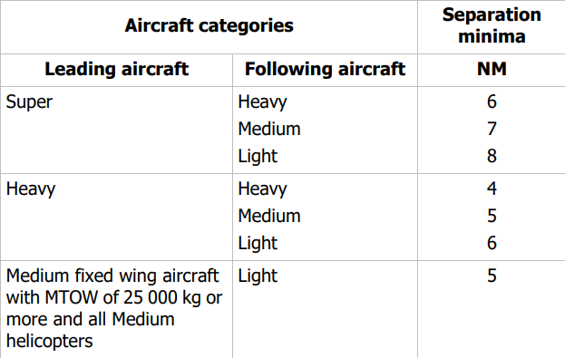 Separation standards for different leading and following aircraft