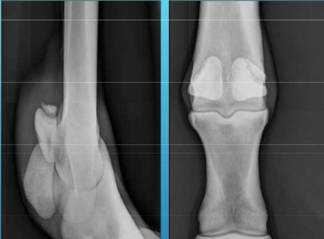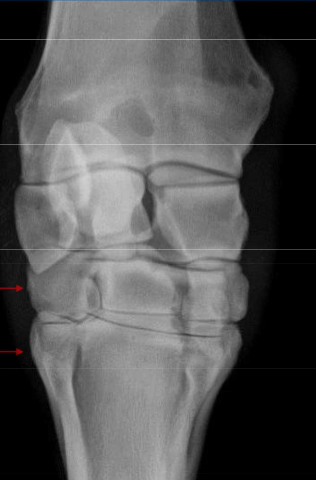 abaxial fracture of the proximal sesamoid bone and 60 deg skyline view