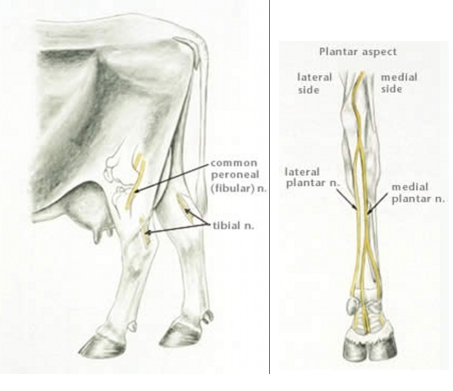 What are the nerve blocks for the hind feet in cattle