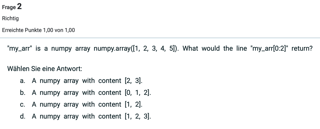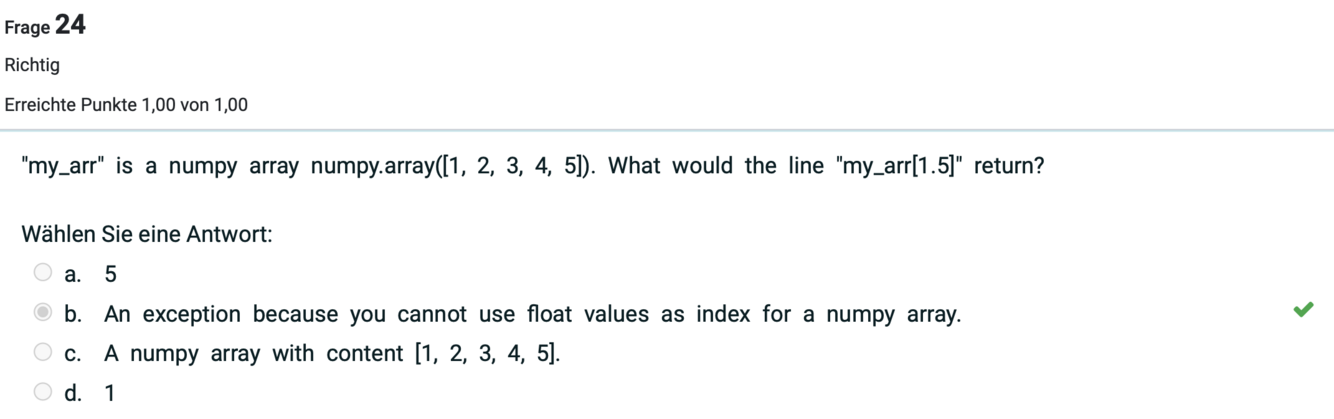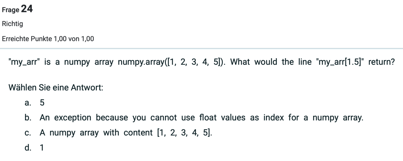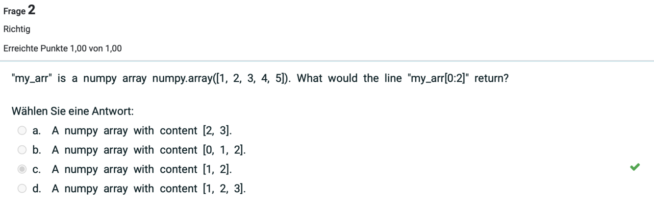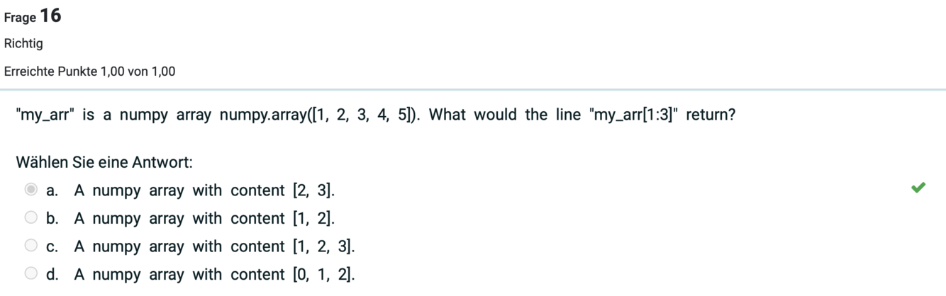 The line my_arr[0, 0] would select the first 1D array (of shape (3,)) from the 3D numpy array my_arr.
