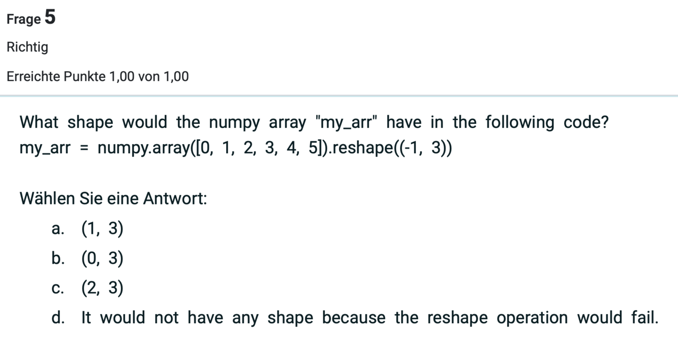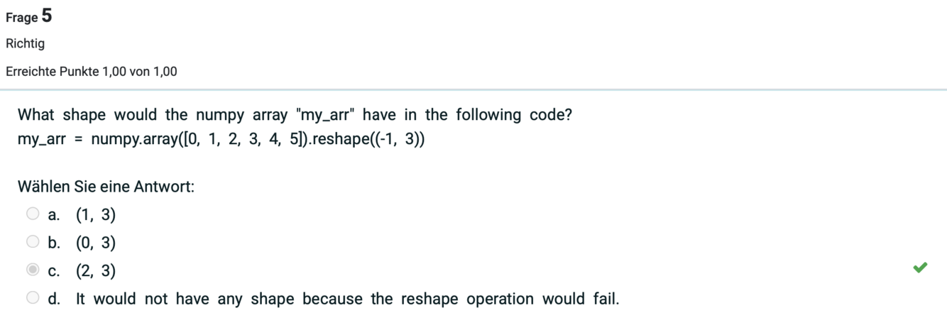 The shape of my_arr would be (2, 3) because the original array has 6 elements, and reshaping it to have 3 columns results in 2 rows.