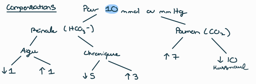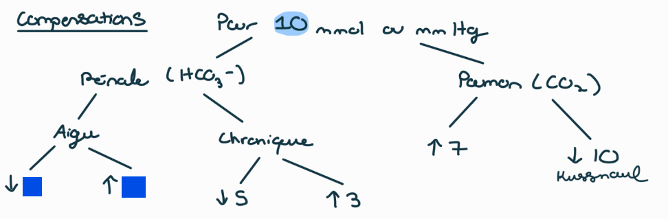 acidose métabolique (rare) = gravité