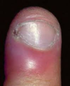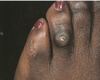 Plat, non-palpable, décoloration, moins de 0,5 cm, blanc, brun, rouge