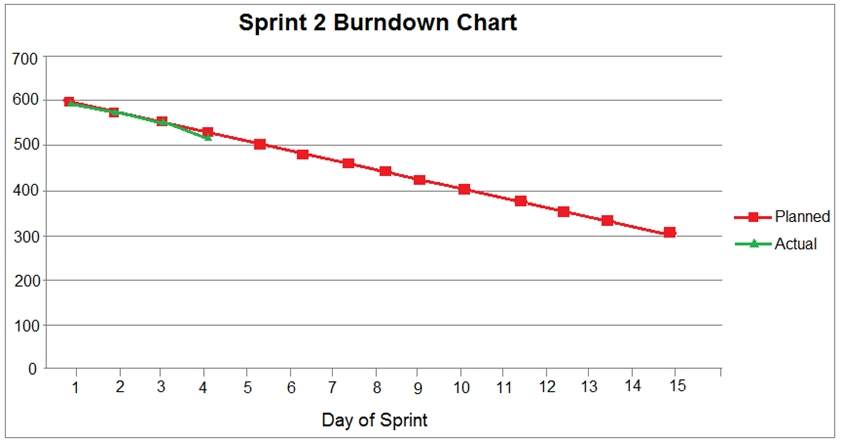 A Scrum team is analyzing the burndown chart on day four of a 15-day sprint. The burndown chart is shown below.