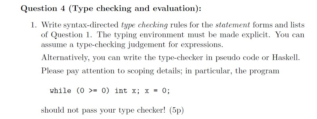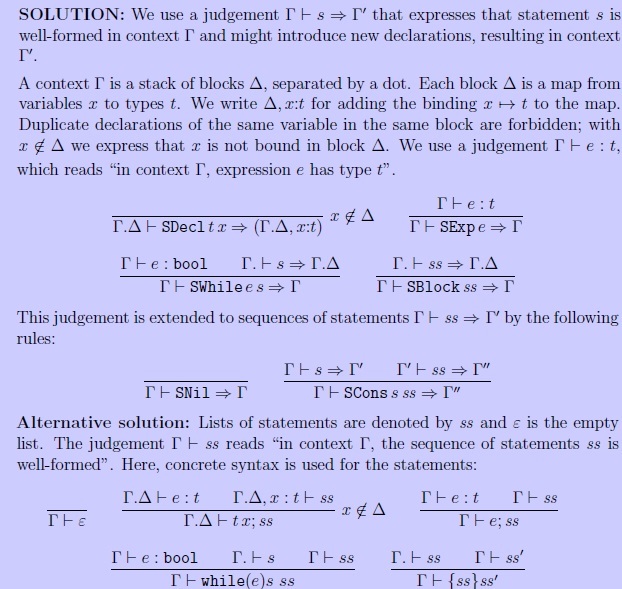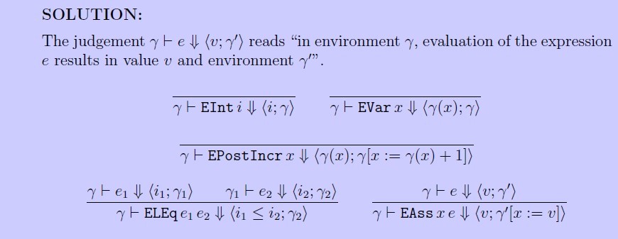 Write syntax directed interpretation rules for the statements forms and lists below. The environment must be made explicit, as well as all possible side effects. You can assume an interpreter for expressions