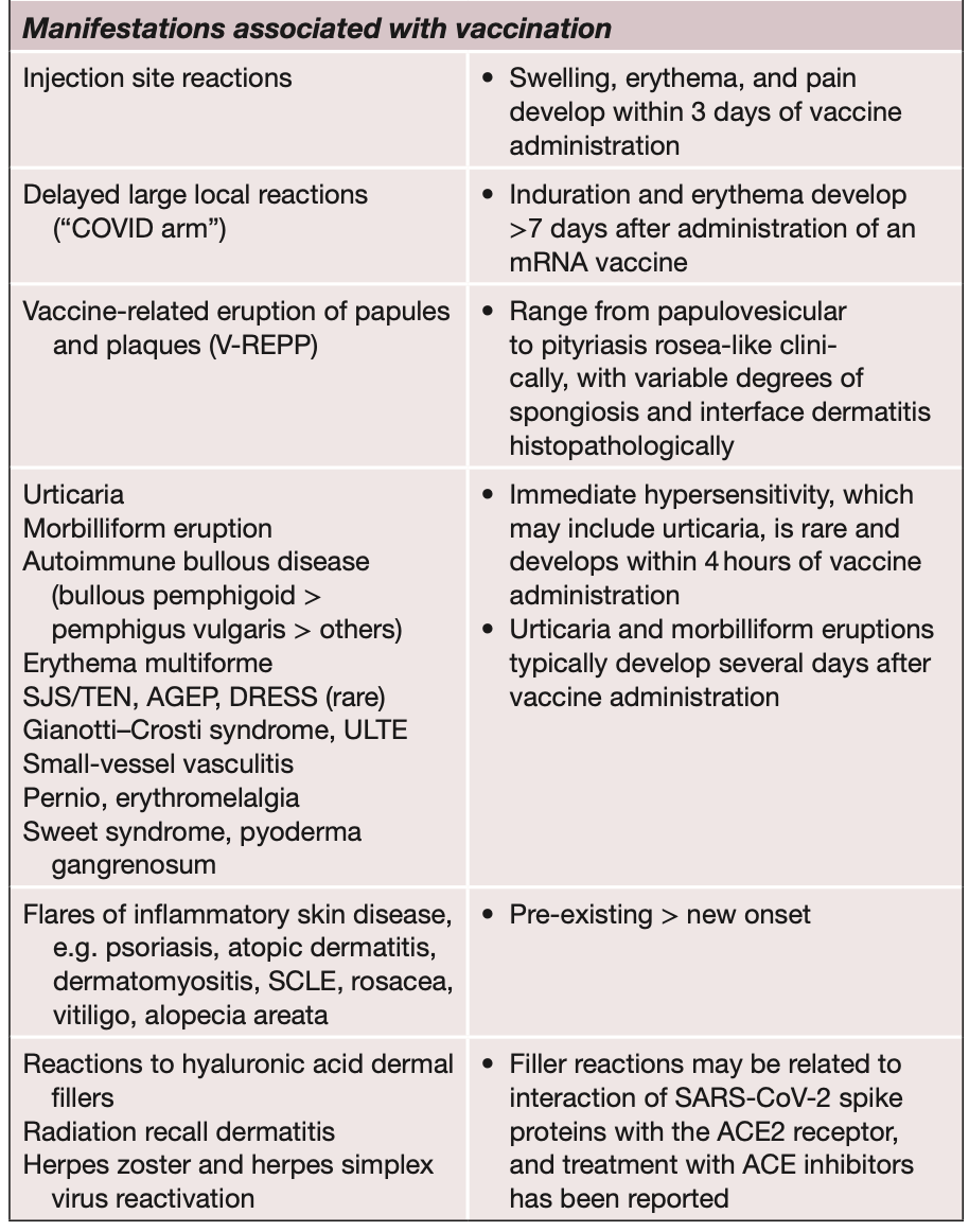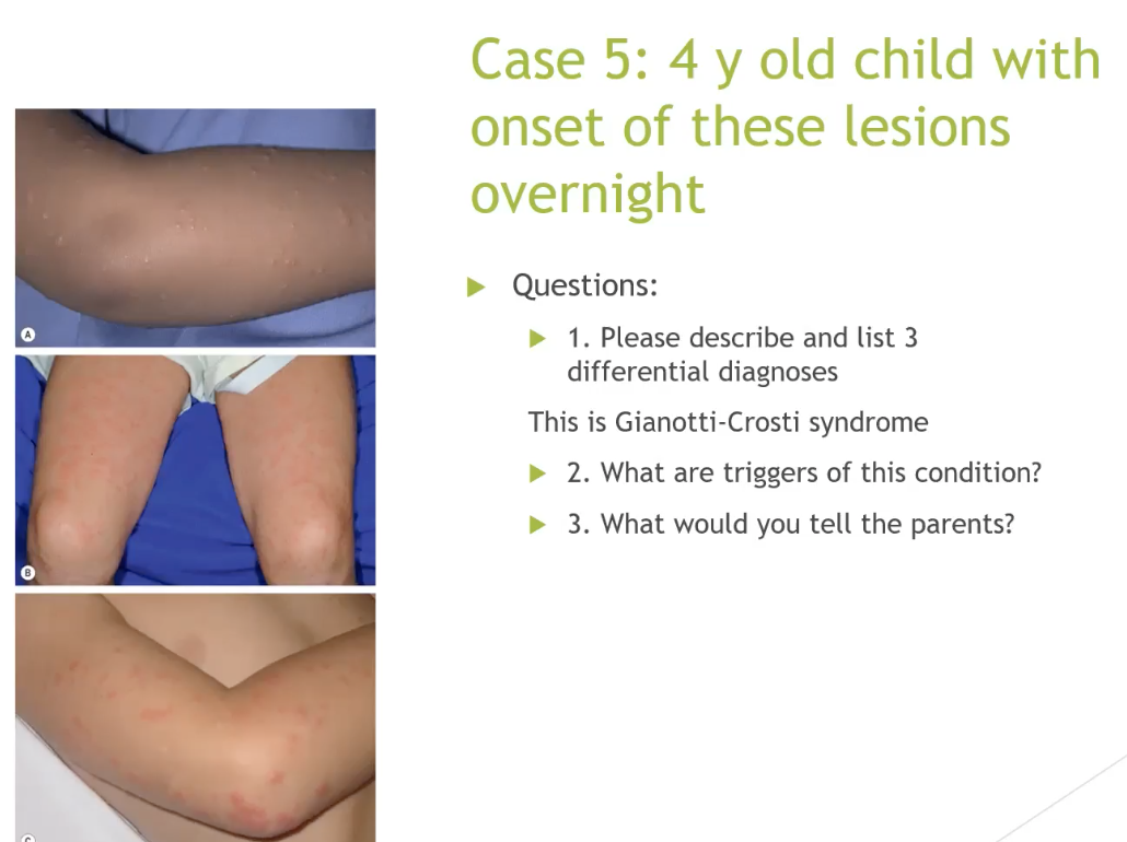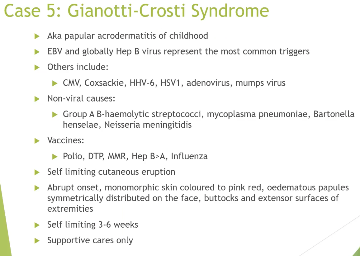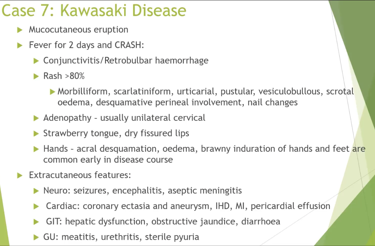 ● peripheral extremity changes including erythema, edema, and eventual desquamation of the hands and feet