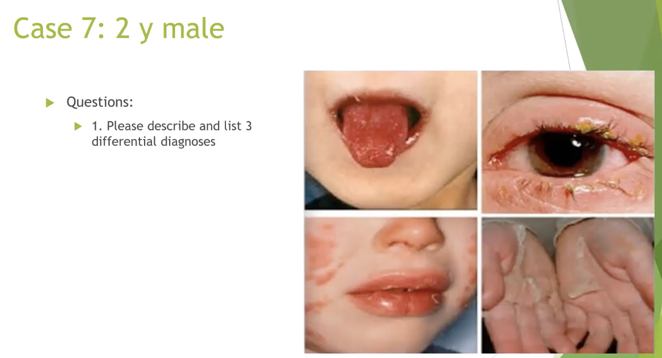 ● oropharyngeal changes including diffuse hyperemia, strawberry tongue, and lip fissures