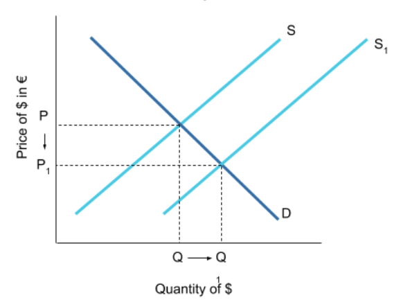 It can be shown in a diagram by either a decrease in Demand for pounds or by an increase in supply for pounds.