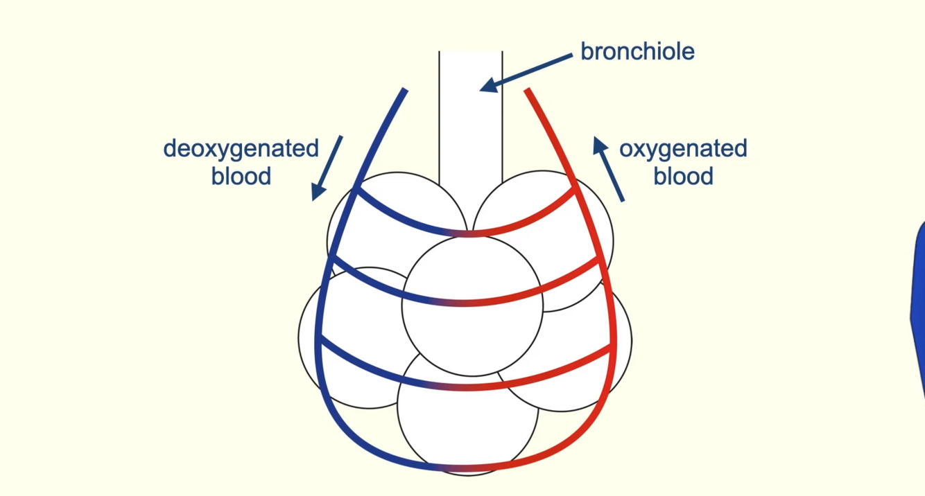 in order to have good blood supply, to allow oxygen to diffuse down the concentration gradient into the lungs from the alveoli into the blood, and for carbon dioxide to move down the concentration gradient, from the blood into the alveoli