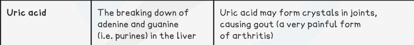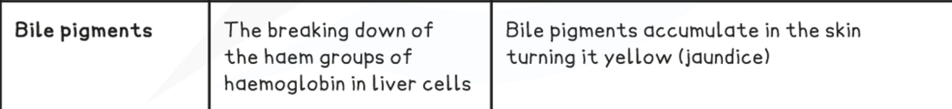 bile pigments (a waste product from the breakdown of haemoglobin)