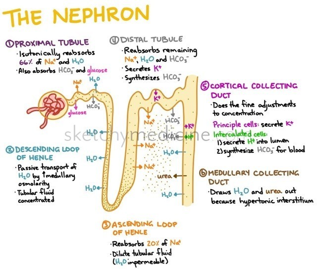 Draw and label a diagram of the kidney making sure to include the location and orientation of nephrons.