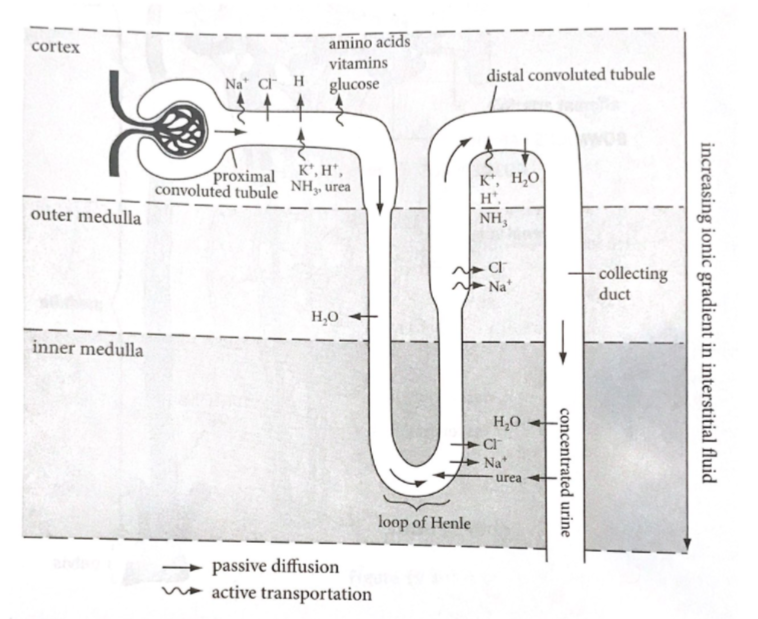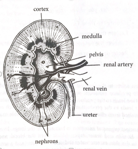 kidneys: function to filter, maintina osmolarity of blood, excrete mucerous products and toxic chemicals and conserve glucose water and salt