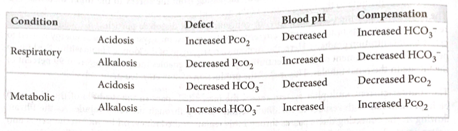how are changes in PCO2 and HCO3- compensated for