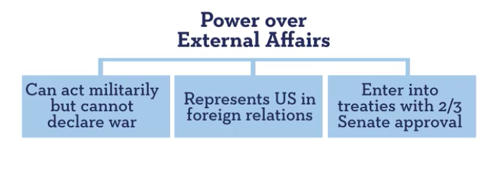 President does not have exclusive power over matters relating to war. Such power is shared with Congress.