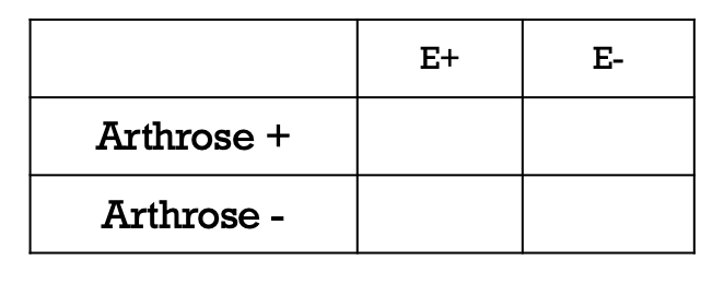 Dans le cadre d’une étude transversale visant à explorer l’effet protecteur d’une nourriture chondroprotectrice (E) sur le risque d’arthrose (M) de la hanche chez le chien, une clinique vétérinaire offre gratuitement un programme de dépistage canin de l’arthrose de la hanche à ses clients afin de recruter des sujets.