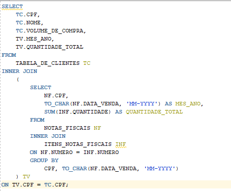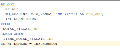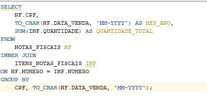 CPF, TO_CHAR(NF.DATA_VENDA, ‘MM-YYYY’);