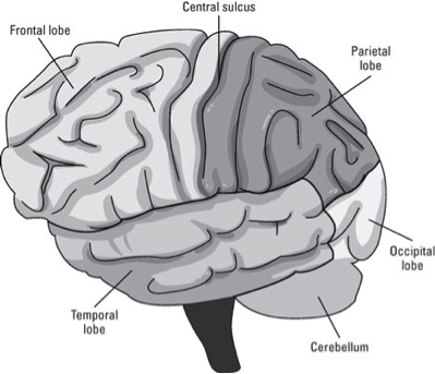 Location: Includes all the neocortex from the front, most anterior part of the brain to a major sulcus, called the central sulcus, that runs from side to side at about the middle of the brain.